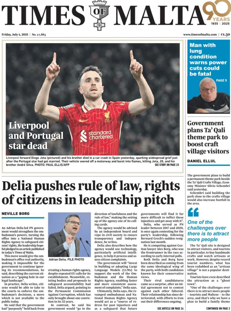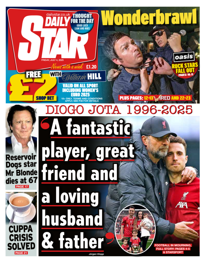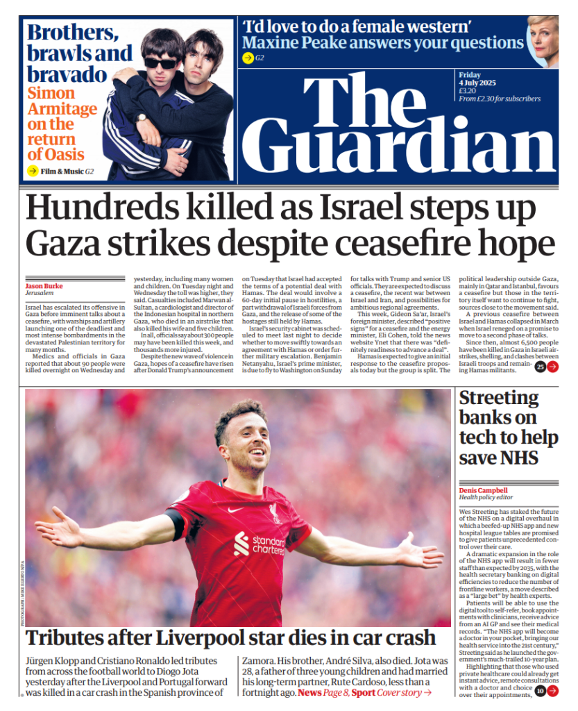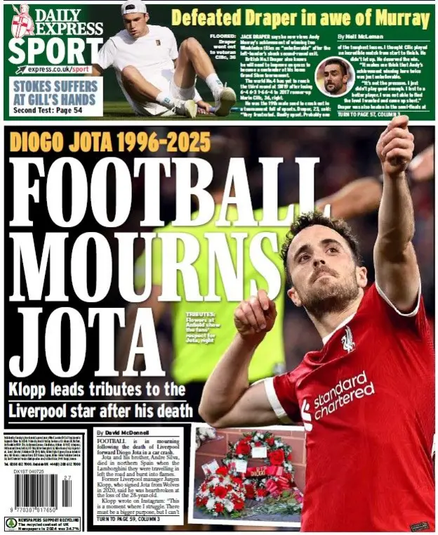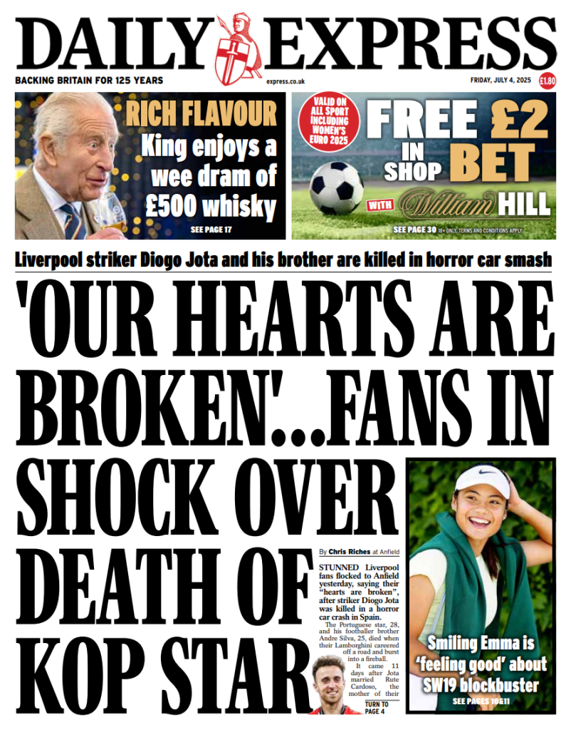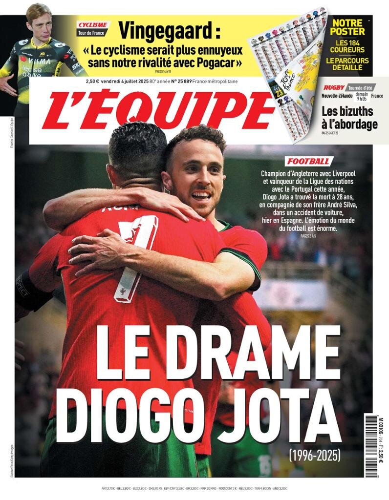 FRONT PAGES: DIOGO JOTA July 4, 2025 Share: How the media covered the passing of Diogo Jota 🔥0 News Now: Diogo Jota crash likely caused by speeding, police say FIFA confirms 2026 World Cup seeding pots Newcastle defeats Everton, secures first away win since April Inter Miami crowned MLS champions as Messi shines in 3–1 win