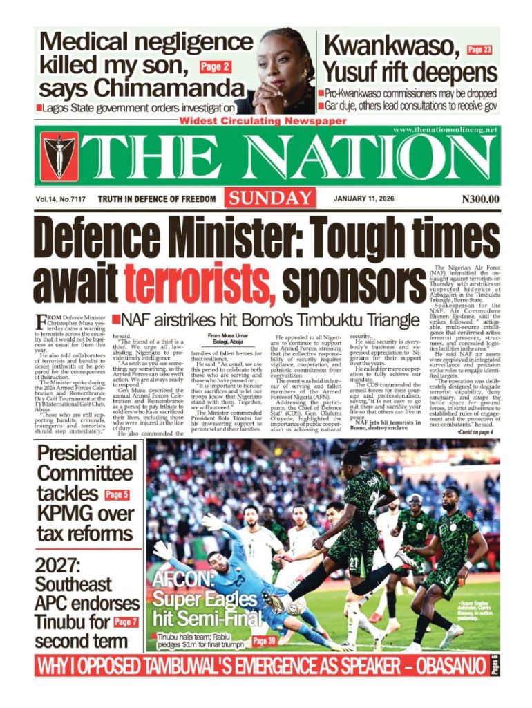 FRONT PAGES: Nigerian Newspapers – 11 January 2026