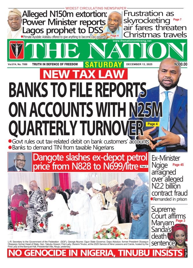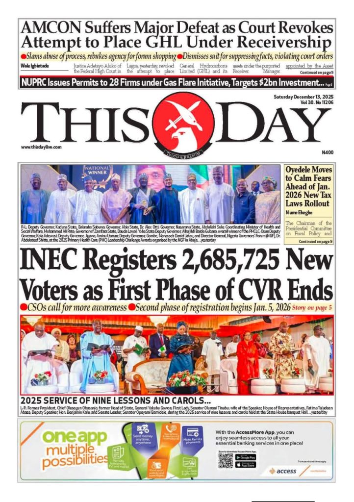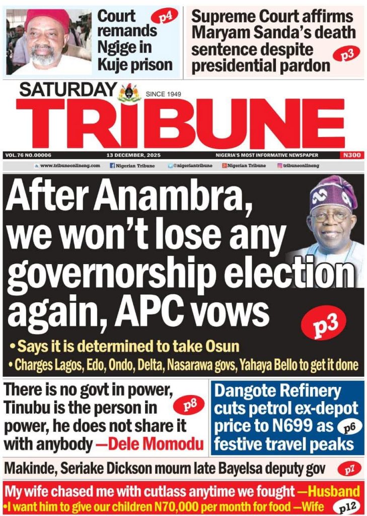 FRONT PAGES: Nigerian Newspapers – 13 December 2025