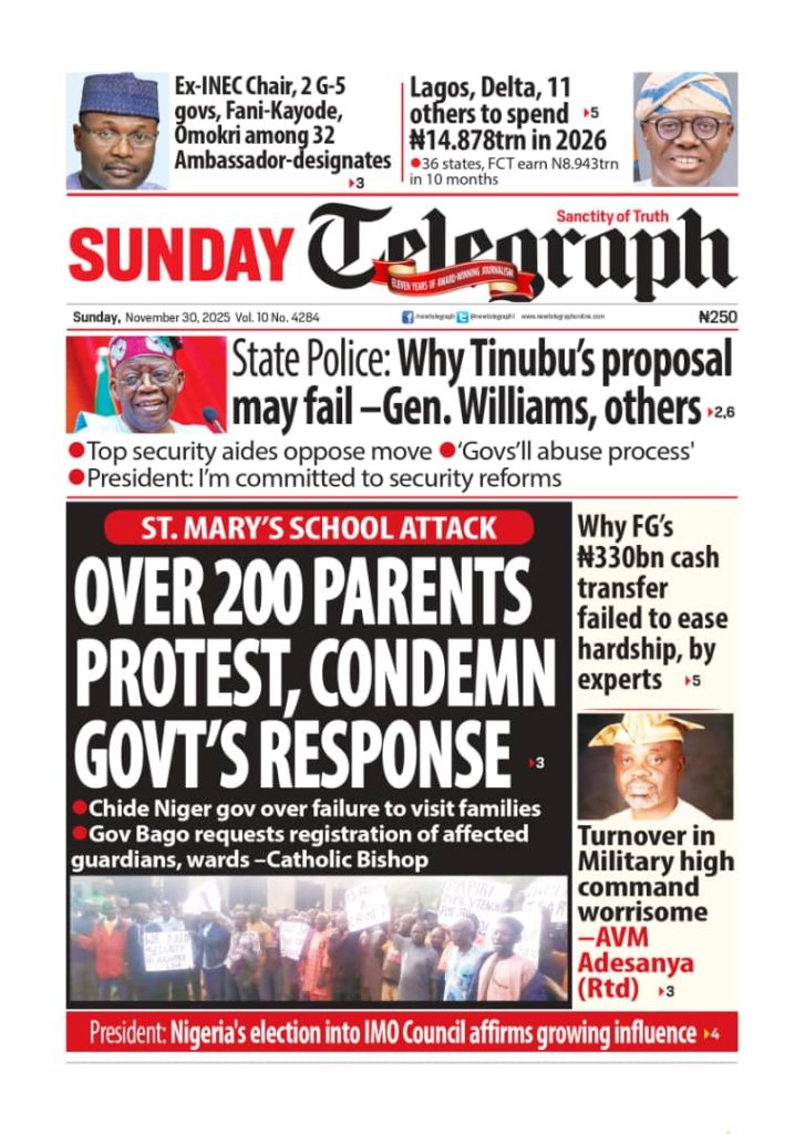 FRONT PAGES: Nigerian Newspapers – 30 November 2025 November 30, 2025 Share: 🔥0 News Now: FRONT PAGES: Nigerian Newspapers – 7 December 2025 FRONT PAGES: Nigerian newspapers – 3 January 2026 FRONT PAGES: Nigerian Newspapers – 11 January 2026 FRONT PAGES: Nigerian Newspapers – 24 January 2026