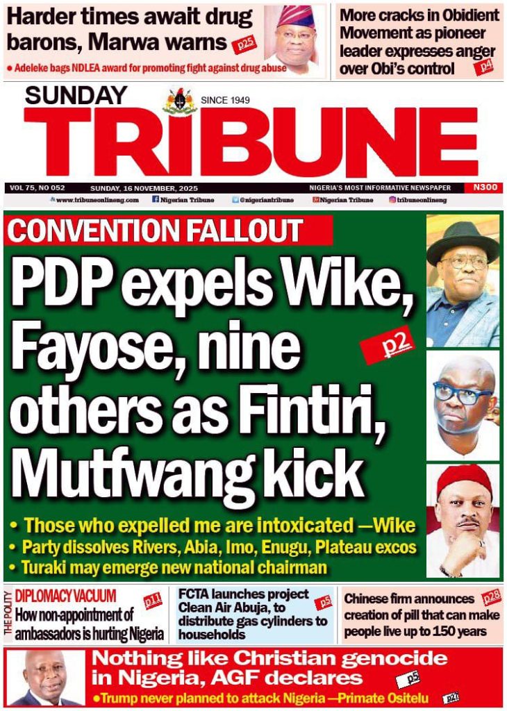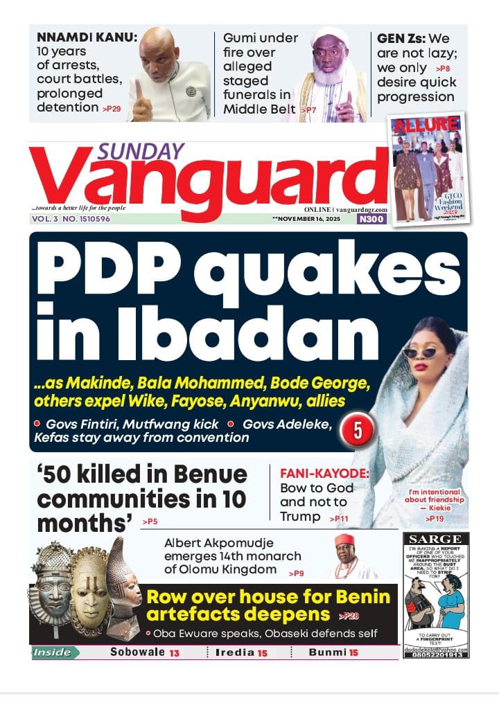 FRONT PAGES: Nigerian Newspapers -16 November 2025