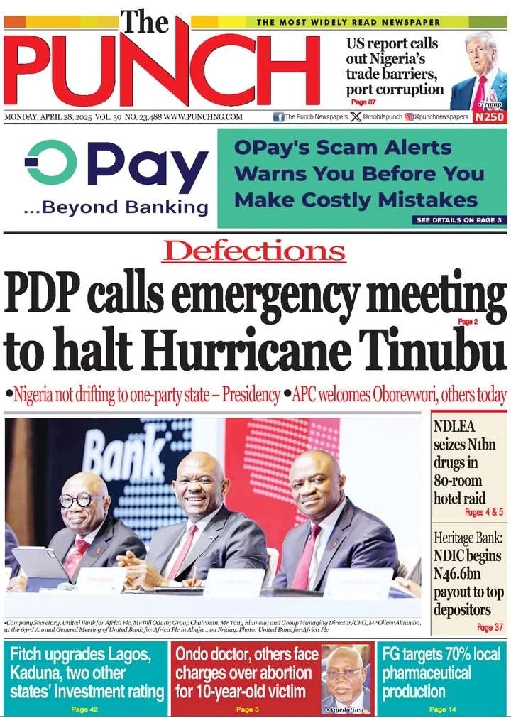 FRONT PAGES: Nigerian Newspapers – 28 APR 2024
