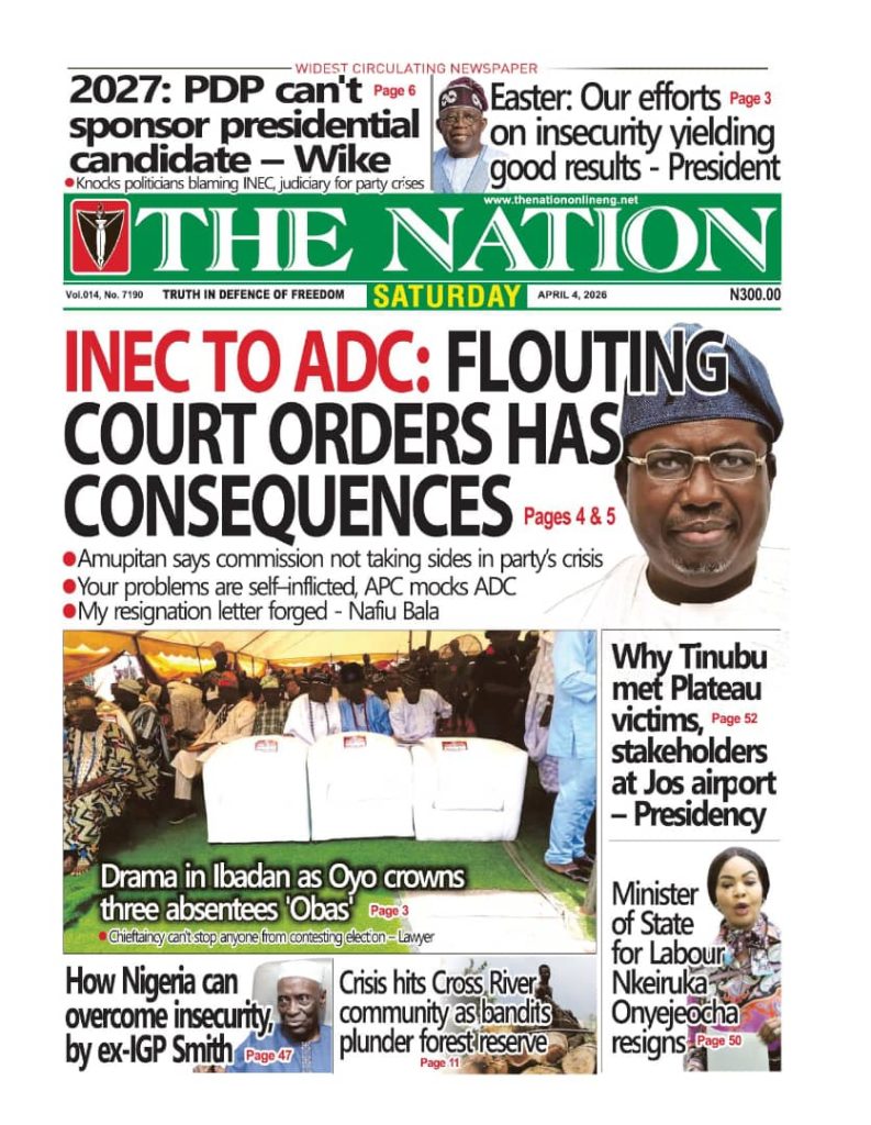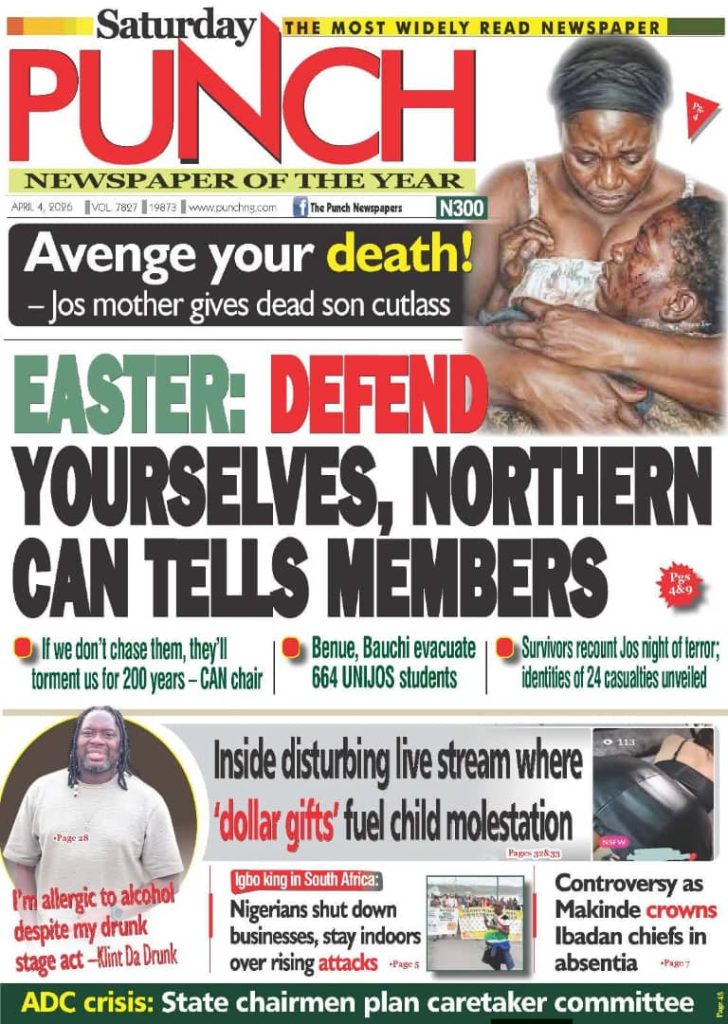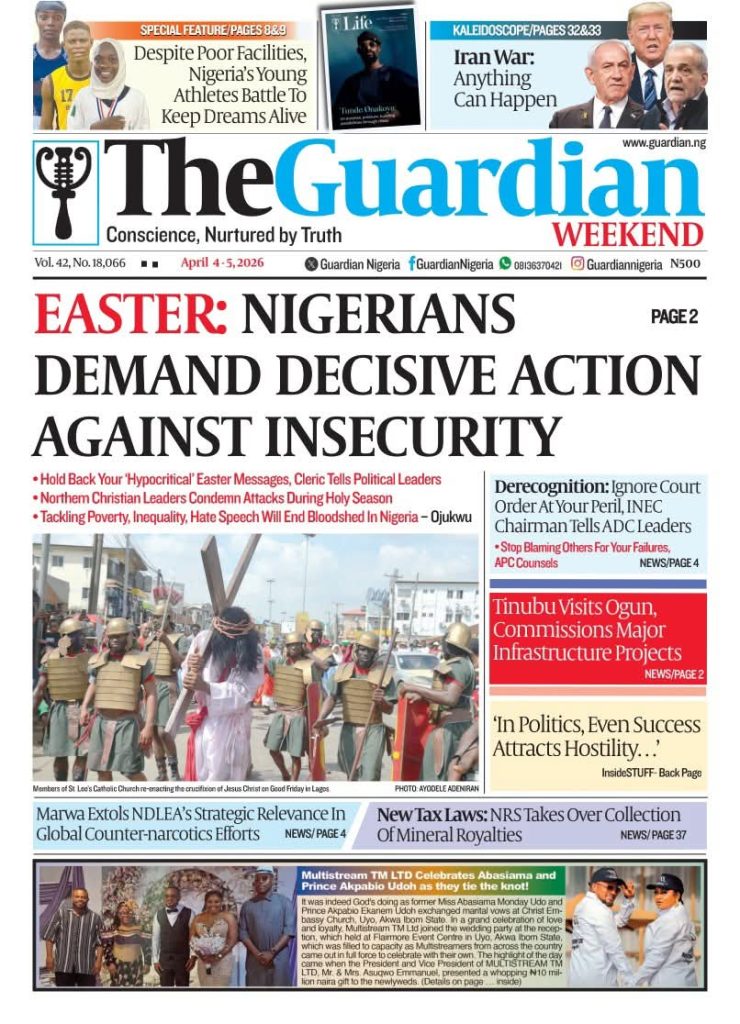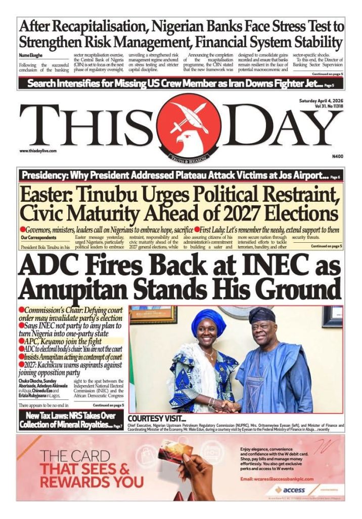 FRONT PAGES: Nigerian Newspapers – 4 April 2026 April 4, 2026 Share: NEWS NOW:PDP chieftain urges Wike to contest presidencyAmnesty calls for justice after teen dies in alleged Military celebratory gunfireIbrahim Mahama sends private jet abroad for conversion into air ambulance for public useEASTER: Terrorists attack Kaduna churches, kill seven, abduct others🔥0 💬 Join our WhatsApp Channel 🌐 Join our WhatsApp Community
