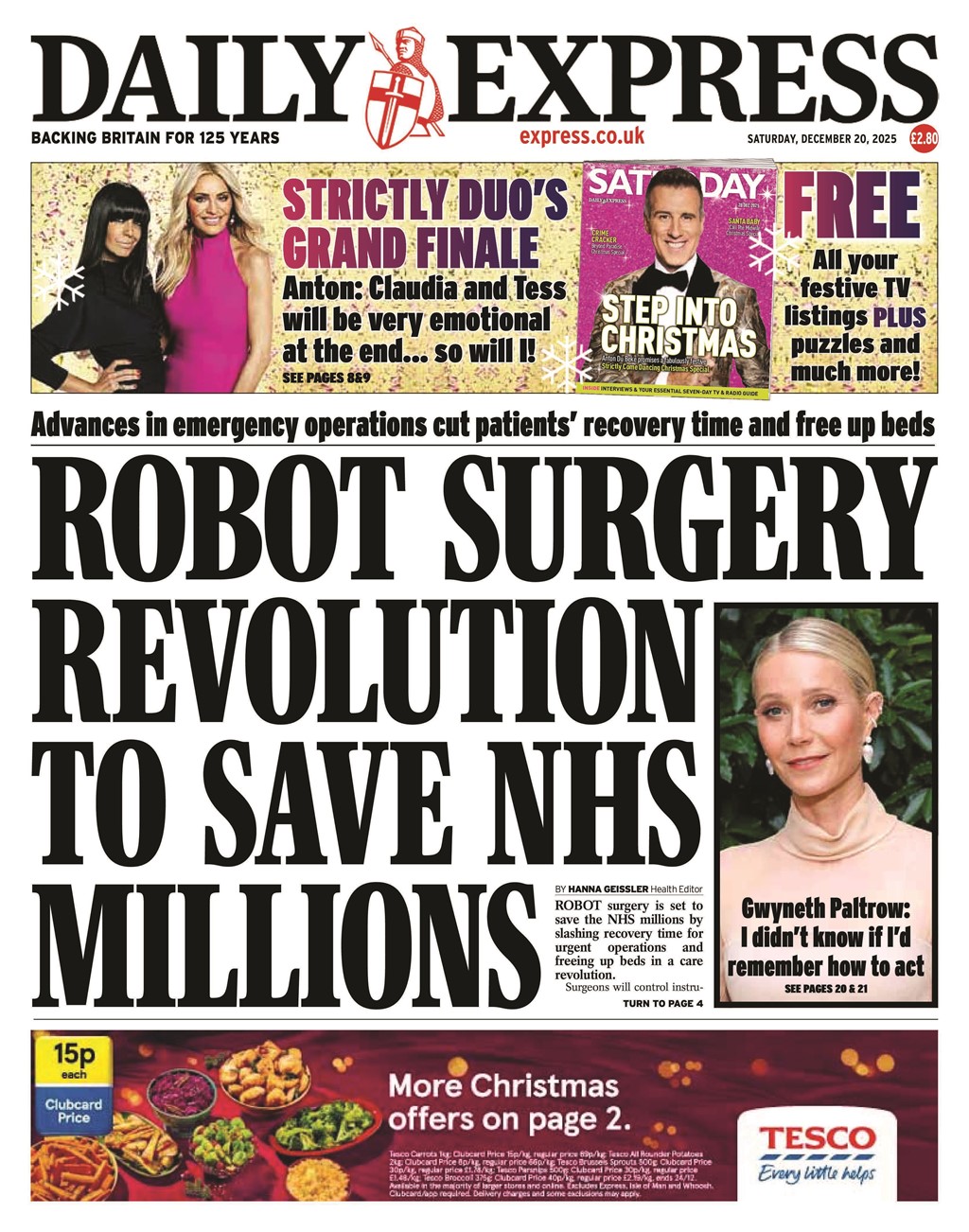 The NHS will be able to save millions of pounds by reducing operation recovery times with the use of “robot surgery”, according to the Daily Express.