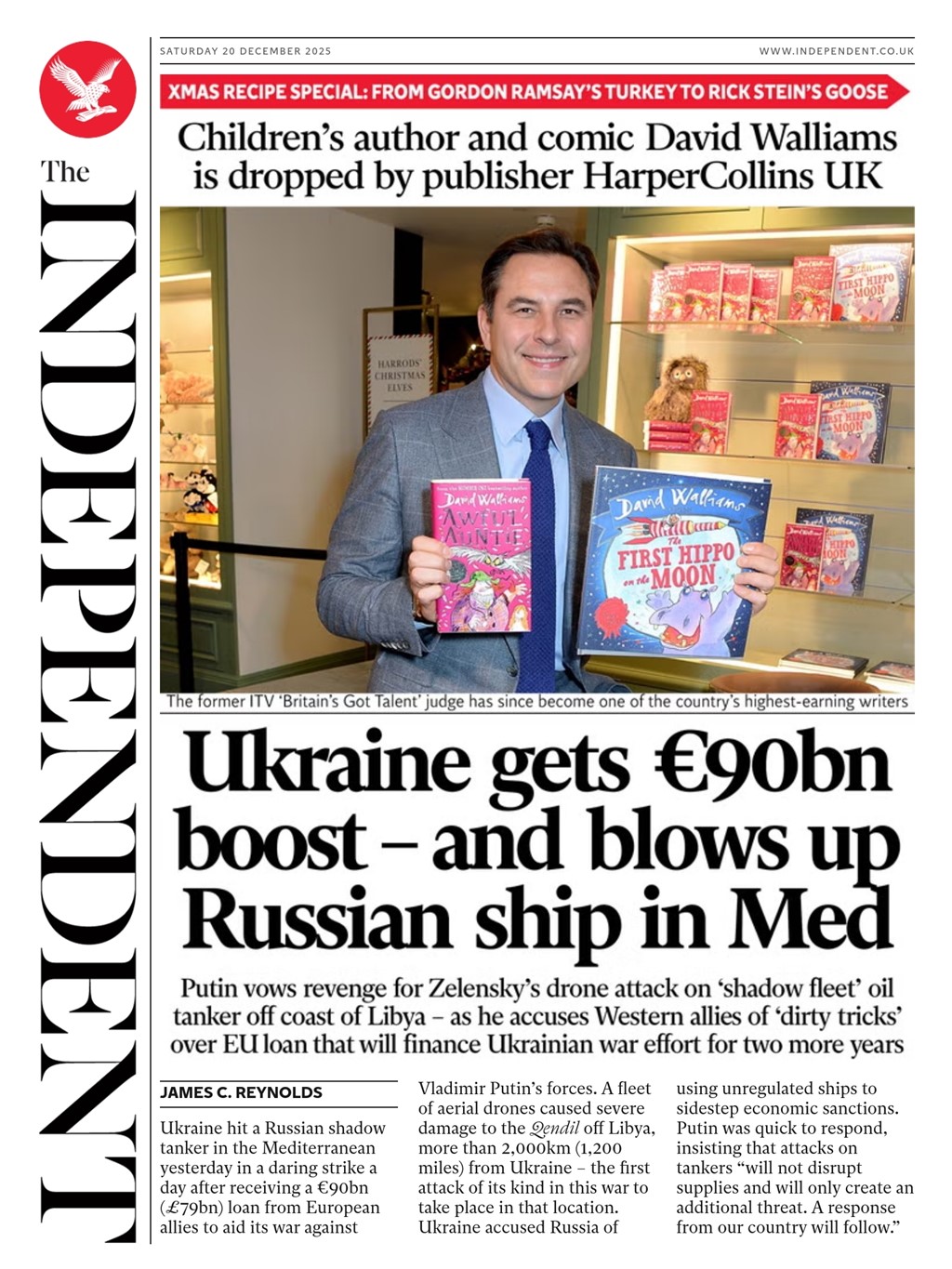 Ukrainian forces struck a Russian tanker a day after its European allies agreed to loan Kyiv €90bn (£79bn), The Independent reports.